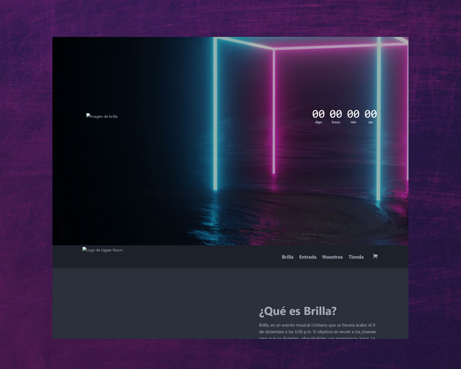 Brilla was a Christian musical event held on December 9th, 2022, with the goal of bringing young people together for an enjoyable and unique experience. The event featured an entrance and performance area adorned with colorful lights, creating a distinctive sensory experience for the audience. This atmosphere was designed to make the evening memorable and engaging for all attendees. Additionally, part of the event's objective was to give Christmas gifts to children in poor conditions, adding a meaningful and charitable aspect to the celebration. I donated the website to support this noble cause, ensuring that the event's online presence was professional and impactful.